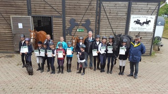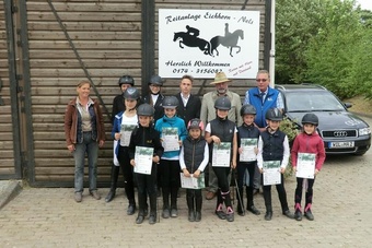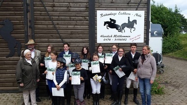 Am 10.05.2014 fand auf unserer Anlage zum ersten mal seit Gründung eine Reitabzeichenprüfung statt. Diese wurde von den Richtern Herrn Orsini und Frau Reuter gerichtet. Alle Teilnehmer bestanden mit sehr gutem Ergebnis.